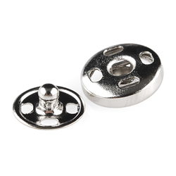 Description: These sew-on fabric snaps are the same size used on the LilyPad SimpleSnap boards. You can sew these into your project to allow for easy removal or prototyping. They are 8mm snaps, which is equivalent to a size #1/0 at your local fabric shop.