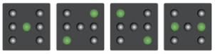 After examining how a real die works, I noticed that all six possible throws are produced with a combination of only four dot patterns.