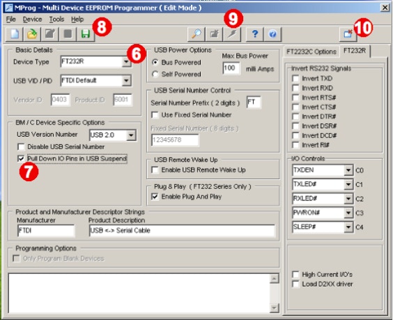 9. Program your FT232R, by pressing on the “Lighting bolt” icon.