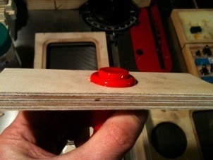 Using a 1 1/8” hole saw cut the hole for the big button in the piece that will be the box top.