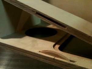 Center the speaker over the speaker hole and using very short screws, fasten it to the front of the box, from the inside. You may want to hold the screw against the side of the box to make sure it won’t go all the way through.