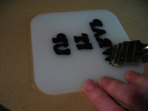 While the silver paint is drying you can prepare the front message panel. If you are using a laser etched acrylic panel then only use acrylic paint for the letters. (Other types of paint seem to make small cracks in the plastic.) Paint the inside of the etched area with black paint, let it dry. If you got paint outside of a letters, wait until after the paint is dry and use a razor blade type paint scraper while holding it at a low angle.