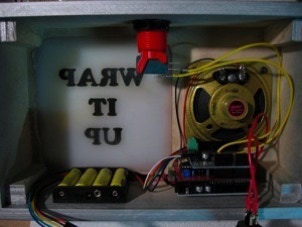 Once the Arduino Wrap It Up Box sketch is uploaded, and you have the wires and shields connected, you should be able to test the box.