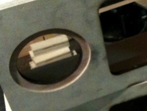There are two other optional cutting steps to the front panel. On our version of the box we used a router to cut a 3/8” rabbet around the outside of the speaker grill hole and from the inside of the message area. These rabbets allow the speaker grill and message panel to fit snugly into the front panel of the box and were cut 1/8” deep to match the thickness of the plastics.