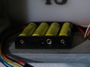 The batteries fit nicely under the message panel. Use double sided tape / foam to attach the battery holder.